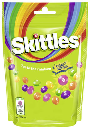Der bunte Regenbogen mit dem sauren Kick! Skittles Crazy Sours im 136g Beutel bieten eine aufregende Mischung aus spritzigen Fruchtgeschmacksrichtungen wie Sauer-Apfel, Sauer-Kirsche und Sauer-Mandarine. Perfekt für alle, die es fruchtig und sauer lieben.
